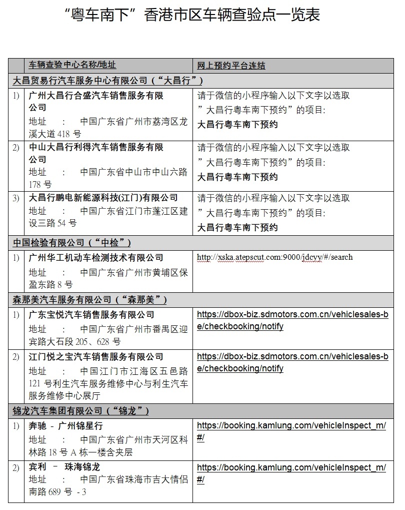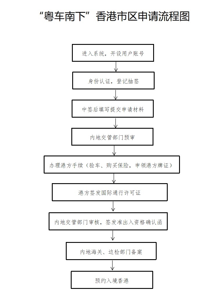 “粤车南下”香港政策分为香港口岸停车场政策和粤车进入香港市区两项政策,第一批先开放4个城市(广州、珠海、江门、中山),半年后推广到全省其他地市。
