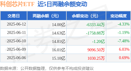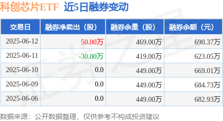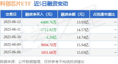 本站消息,6月12日,科创芯片ETF(588200)融资买入8095.56万元,融资偿还1.45亿元,融资净卖出6400.76万元策利配资,融资余额13.93亿元。