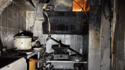 火灾发生后,原本火势可控制在自家店铺内,却因厨房一道木制墙板,导致火灾事故范围扩大。
